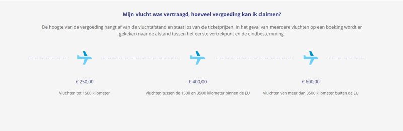 Als je vlucht vertraagd is met meer dan 3 uur heb je recht op een vergoeding voor het geleden tijdsverlies. De vertraging wordt gemeten bij aankomst, het gaat dus niet om de vertrekvertraging. De hoogte van de vergoeding hangt samen met de vluchtafstand, en staat helemaal los van de ticketprijs.